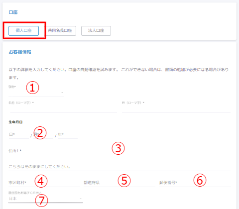 Focus Marketsでは法人口座の開設が可能です。口座開設時に「個人」「共同名義」「法人」の中から「法人」を選択し、必要な情報を入力してください。