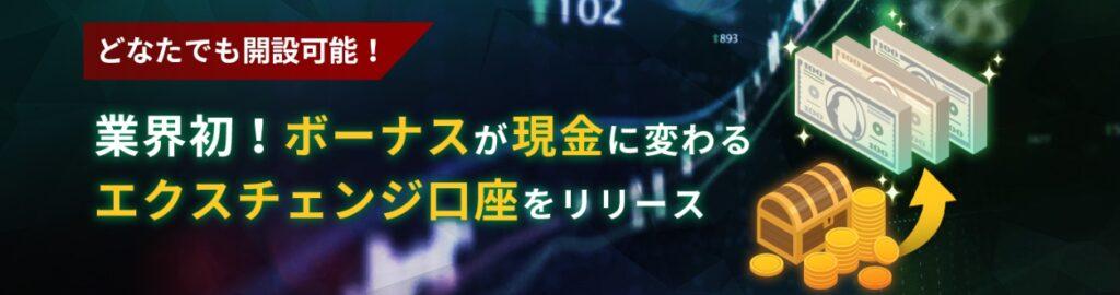 口座開設ボーナスや入金ボーナスを常時実施しており、海外FX業界では珍しく、取引ごとに獲得したボーナスを現金化できる「EX口座」も提供しています。