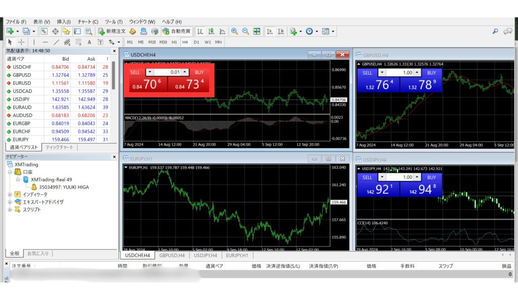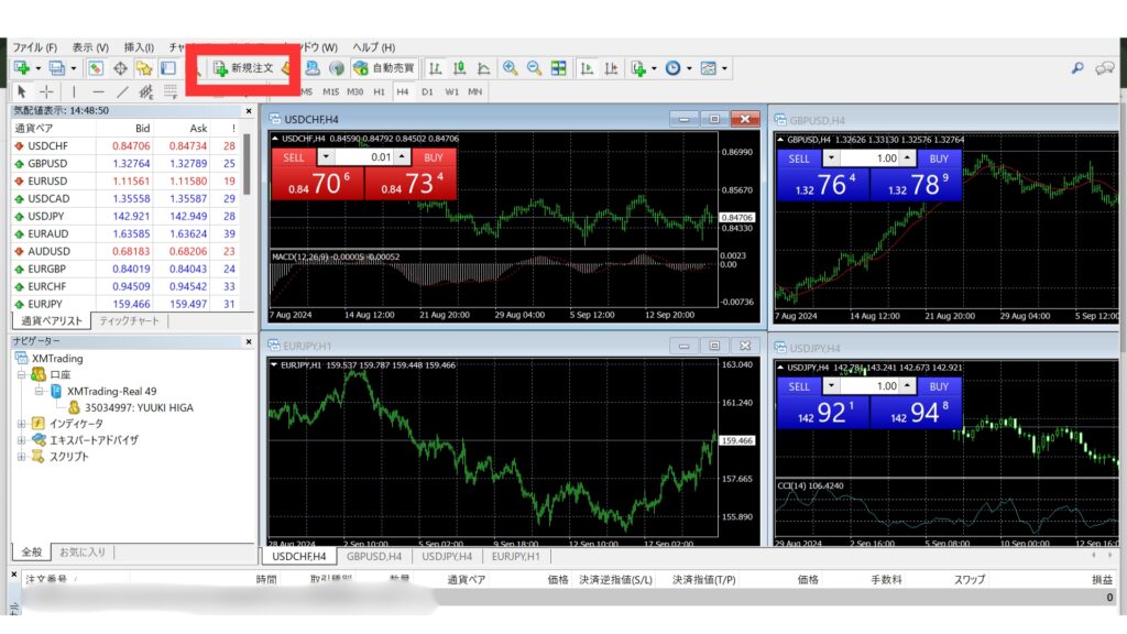 MT4/MT5を起動し、取引を行いたい銘柄のチャートを表示します。