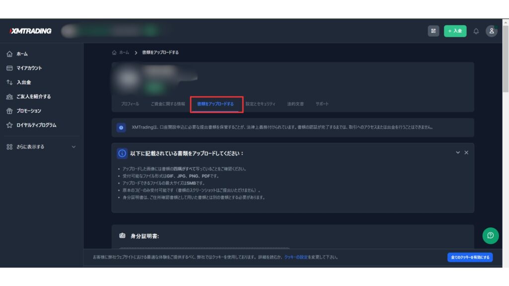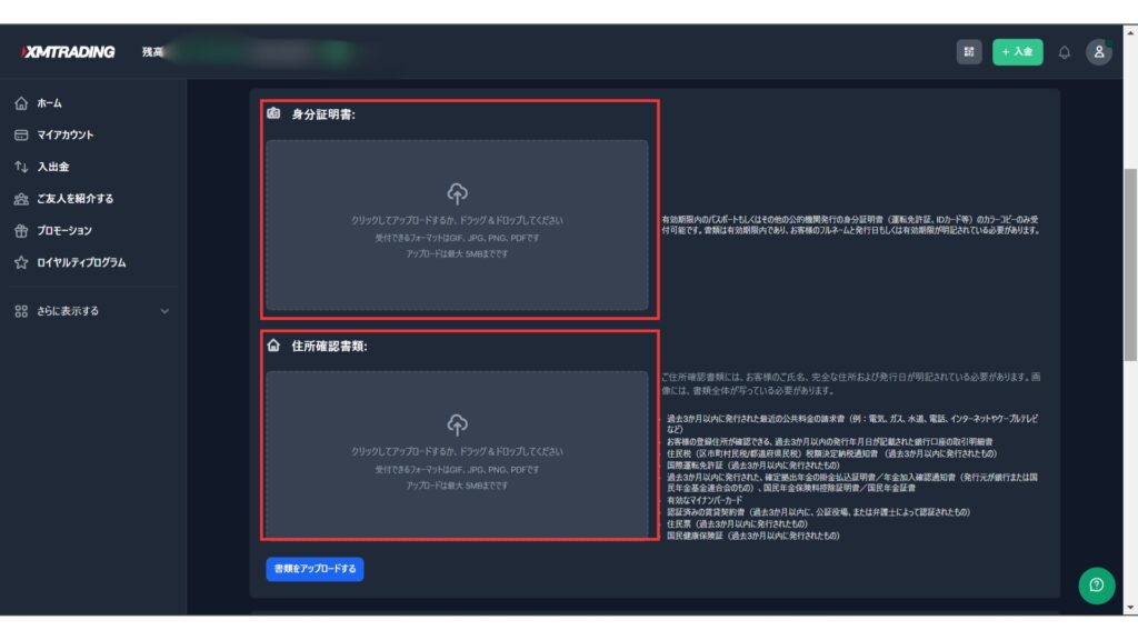 XMの口座有効化に必要な書類