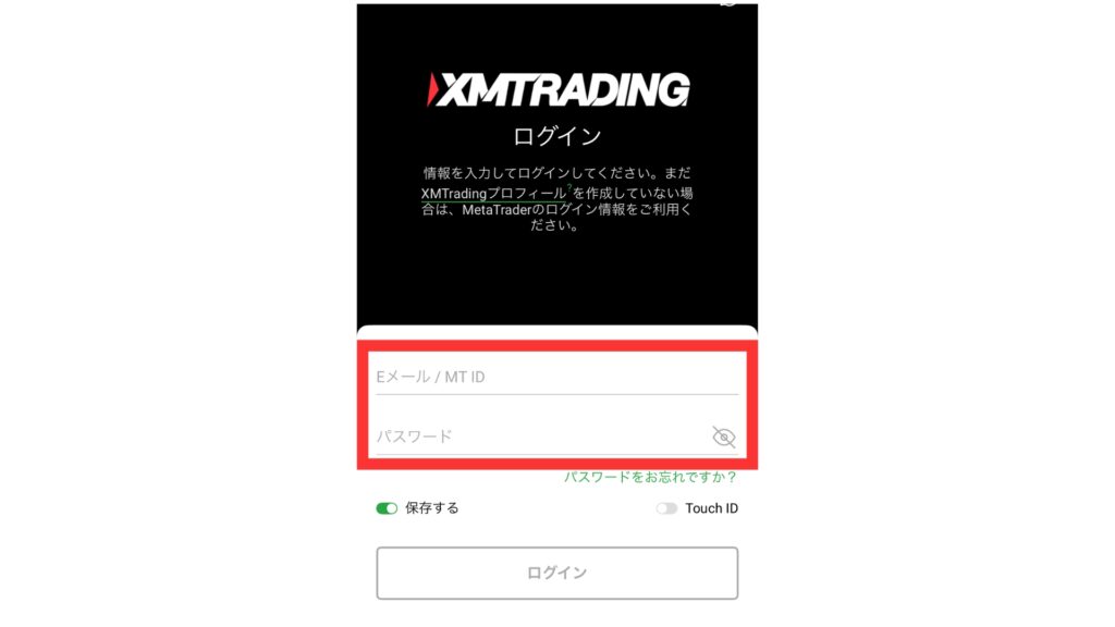 続いて、XM アプリにログインする手順を解説します。