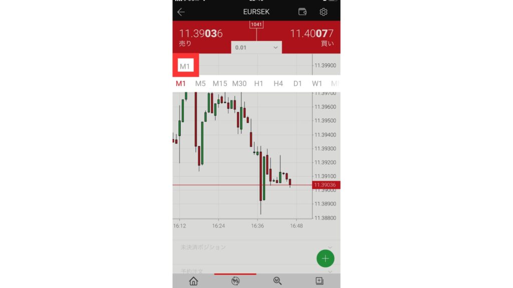 XM アプリでは、チャートの時間足を変更できます。時間足の変更は、以下の通りです。