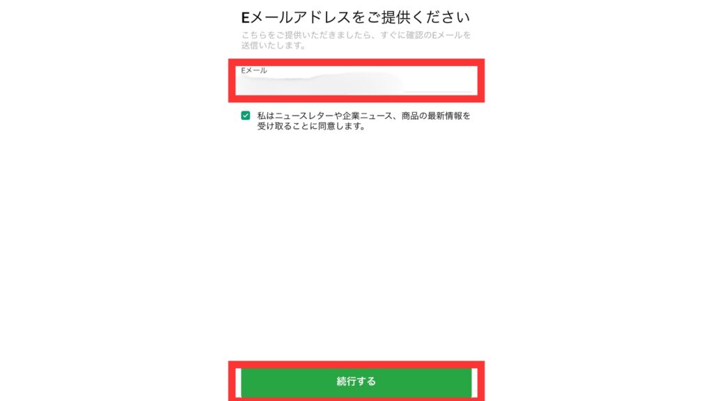 次はメールアドレスを入力します。下のチェックボックスにチェックすると情報がメールに届くので、お得な情報が欲しい人は入れておきましょう。