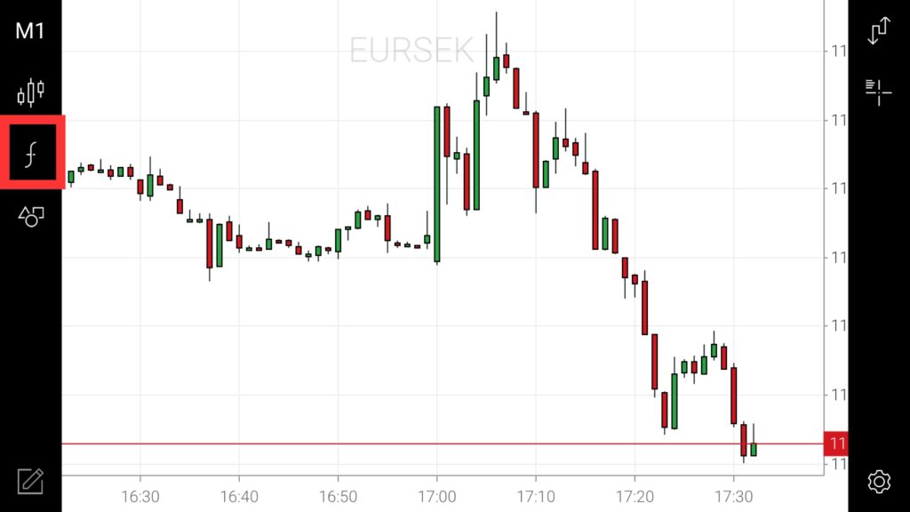 チャート画面に飛んだら、スマホを横向きに傾けます。傾けると「f」が出てくるので、タップします。