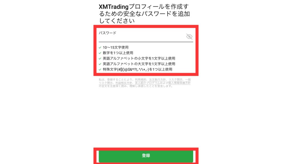 パスワード記入欄の条件を守りながら、パスワードの設定をしましょう。