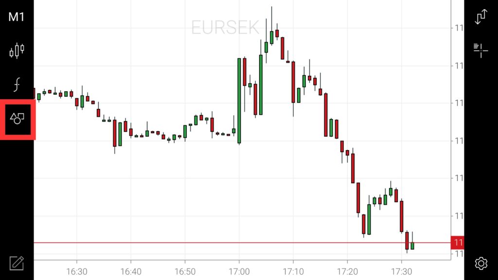 チャート画面に飛んだら、スマホを横向きに傾けます。傾けると「図形」のようなマークが出てくるので、タップします。