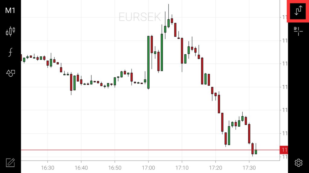 XM アプリのチャート画面で有効にするには、以下の手順が必要になります。