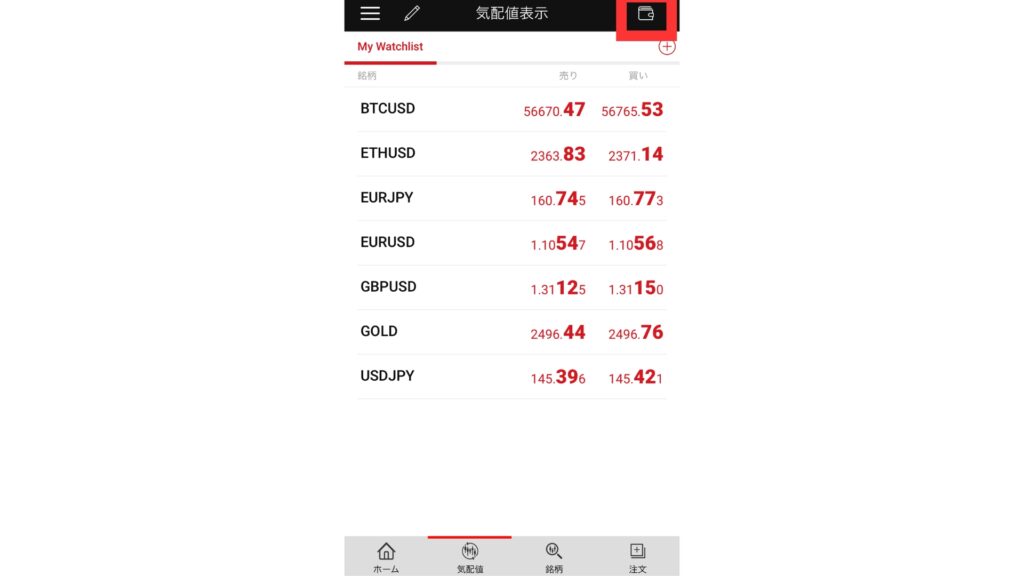 XMアプリの下にある「気配値」をタップします。