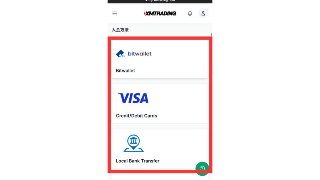 XMアプリでの入金方法
