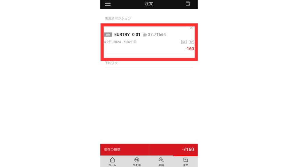 XMアプリでは、両建て時のみポジションの一括決済が可能です。