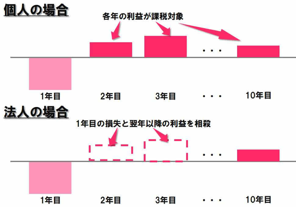 法人化することで損益通算をする対象が増え、節税しやすくなるのです。