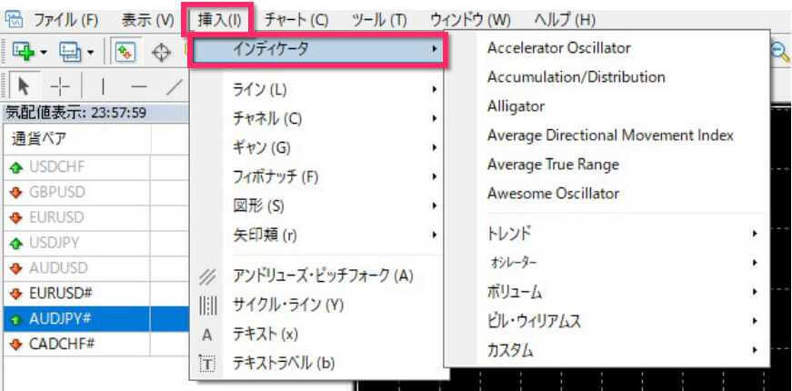 XMのMT4には50種類以上のインジケーターがデフォルトで搭載されており、初心者の方でも操作方法さえわかれば簡単に相場の分析や取引に活用できます。