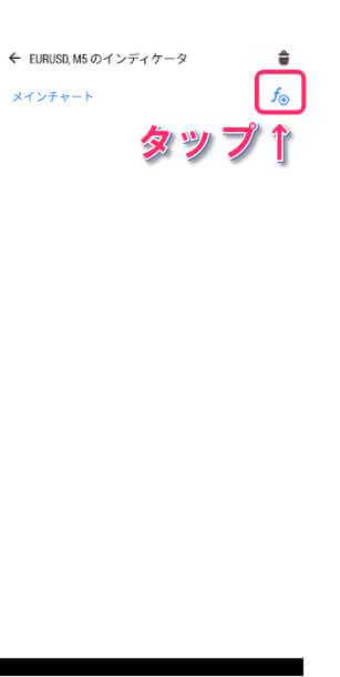 初めてMT5を使うときは何もインジケーターの名前が表示されていないので、「f+」のアイコンをタップして、インジケーター一覧から表示したいインジケーターを選択しましょう。