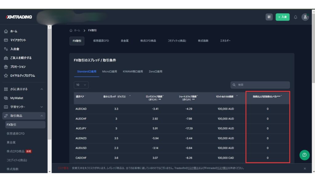 XMのストップレベル一覧