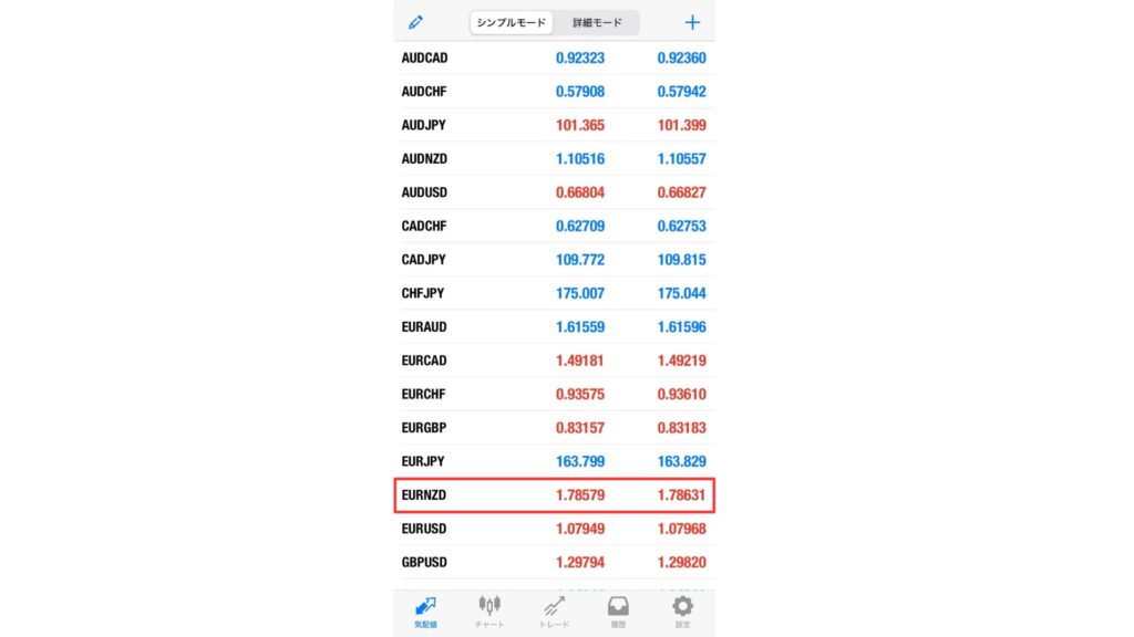 まずはMT4またはMT5アプリを起動して、通貨ペアをタップします。