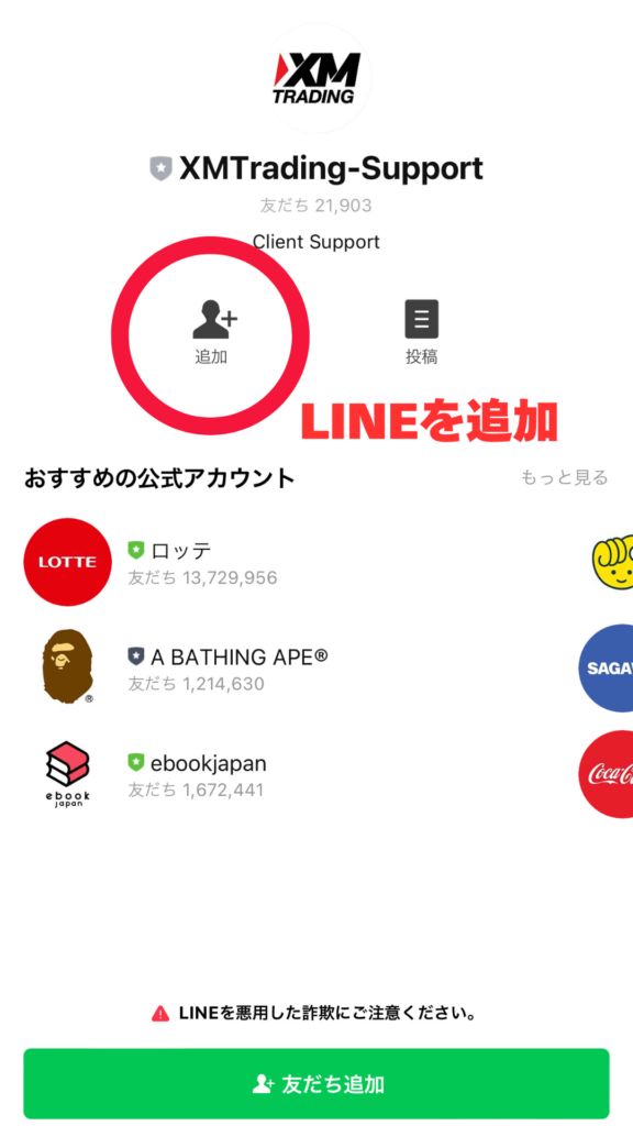XMには公式LINEアカウントがあり、友だち登録すればいつでもLINEで日本語サポートが受けられます。