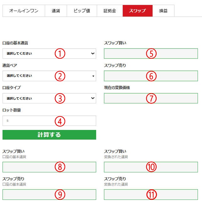 XMの公式サイトにある「スワップ計算機」を使うと、トルコリラで買いと売りのポジションを持った場合、1日あたりどれくらいのスワップポイントが発生するのかを確認できます。
