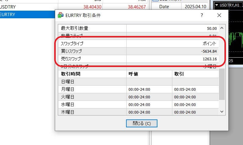 XMのトルコリラのスワップポイント比較
