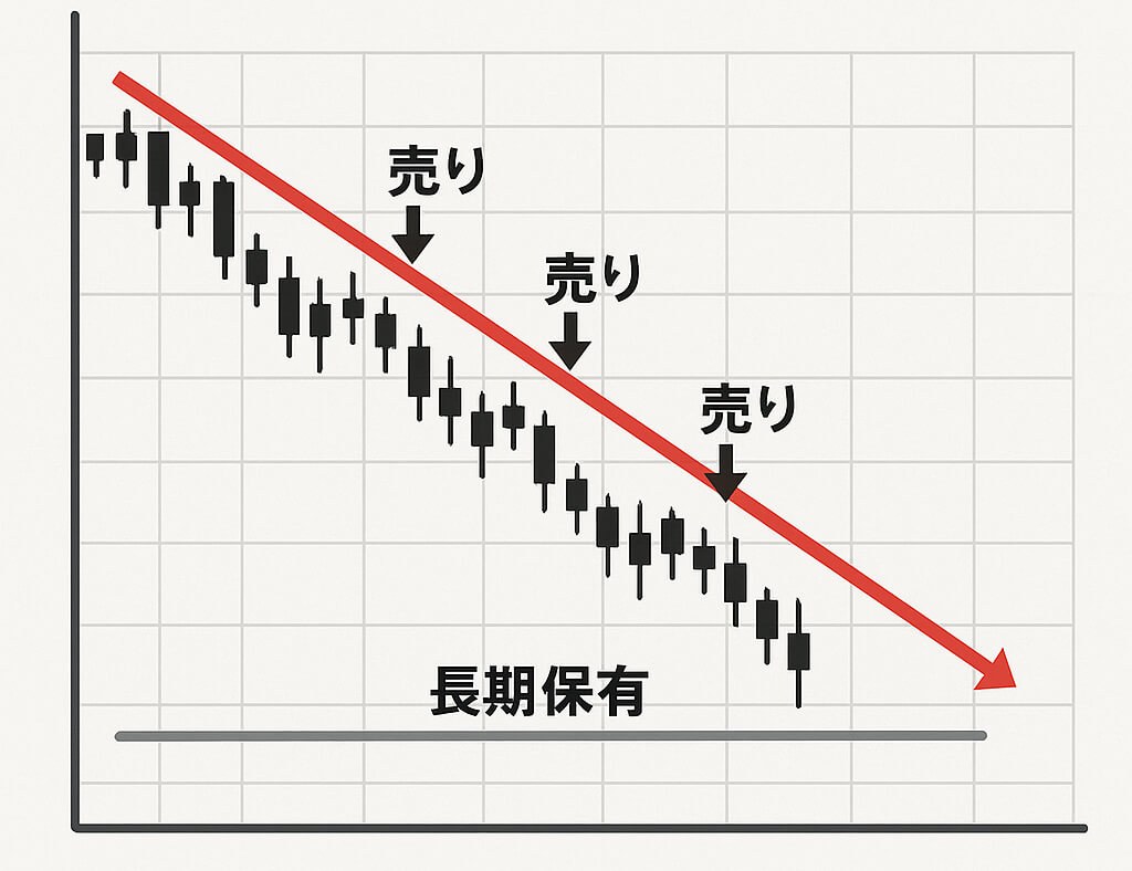段階的な売り増し下落トレンドが継続する場合、平均取得単価を下げ